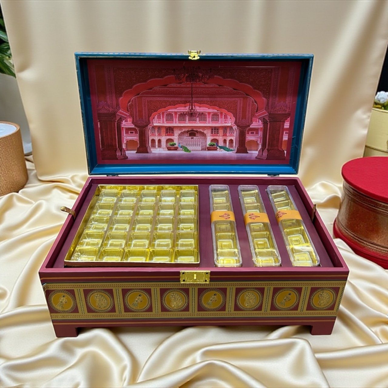 AFFORDABLE LUXURY Step in, explore, and let us wrap your story beautifully. EXPLORE Our Signature Collection GULABI NOOR MEHER MAHAL MANOHARA PETI RAM RAJYA SANDOOK MEHROON MANTHAN RAJWADA SANDOOK Because your special moments deserve a box as timeless as your love!! Wedding Boxes Shop Now Luxury Boxes Shop Now Baskets Shop Now Curated for You!!Crafted with elegance, made to say what words can’tSHOP NOW For our exclusive collection , Visit our Factory!! Contact us